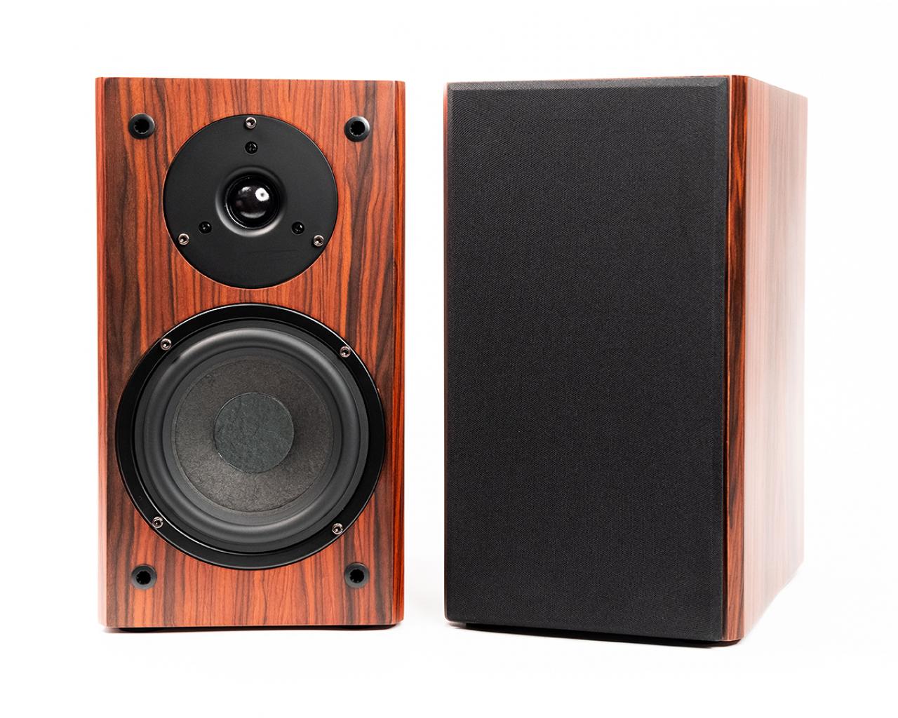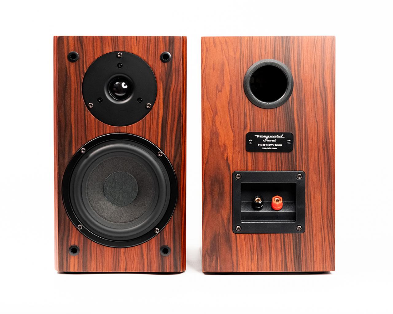 Vanguard Scout is a compact 2 way bass reflex speaker with a 5.25in treated paper cone woofer and a 25mm silk dome tweeter in superbly crafted rosewood veneer cabinet with a satin finish. What makes the Scout special is the crossover and how it is voiced to provide a smooth presentation with pinpoint imaging and a wide soundstage. The crossover uses high quality custom inductors and film capacitors typically seen on speakers costing 10x the price.